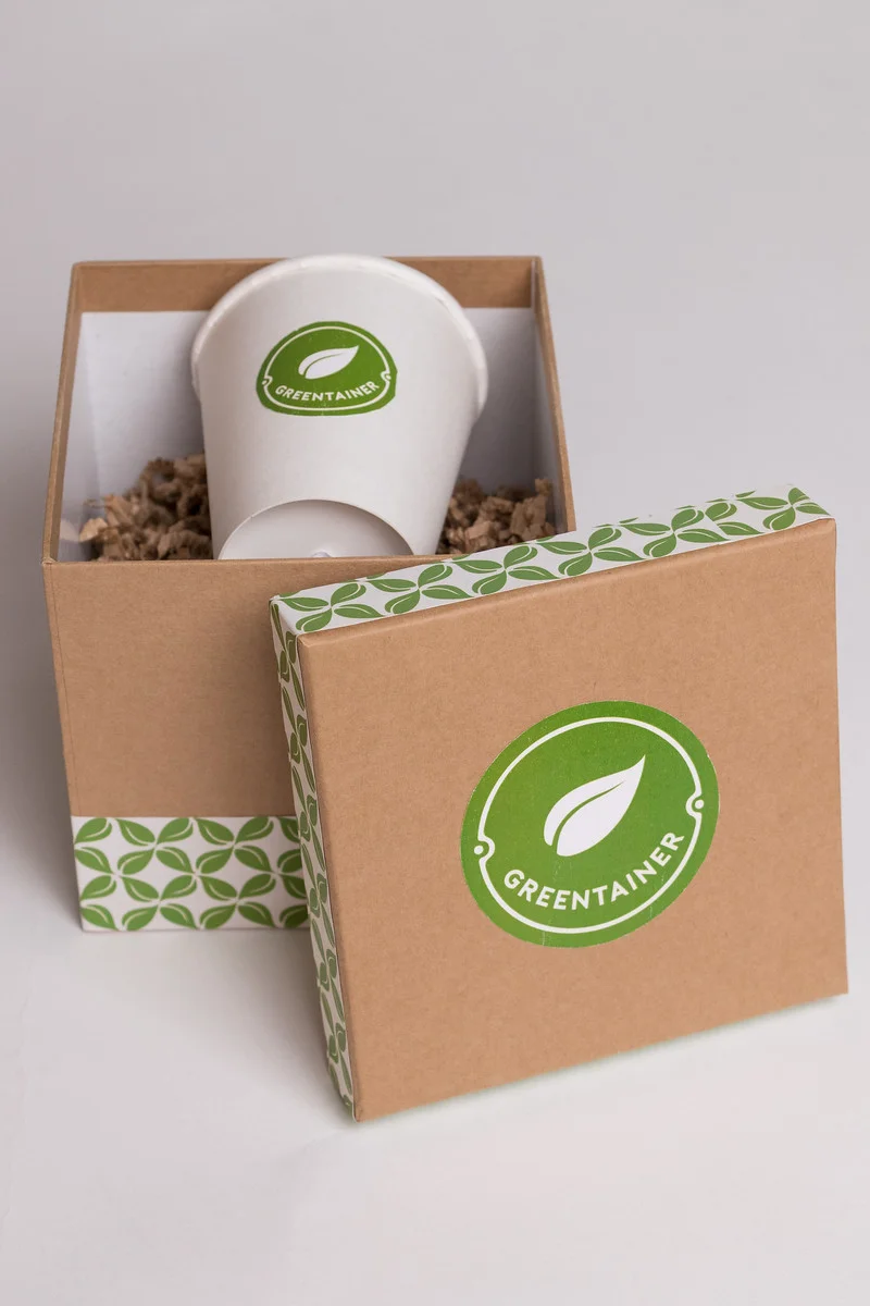 I wanted to take a standard drinking cup and repurpose it into a functional flower pot idea. Keeping everything to a nature theme, from recycled boxing as the package, reusing the leafy logo for pattern decoration, and keeping the rest of the packaged items in biodegradable bags. How everything is nestled in side the packaging resembles much like the Greentainer itself burying the cup inside the box and having the seed and soil buried underneath the cup as if you were planting.
